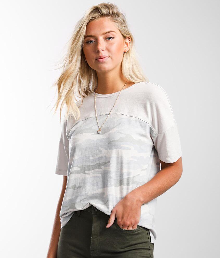 White Crow Pieced T Shirt Women S T Shirts In Soft Grey Camo Buckle